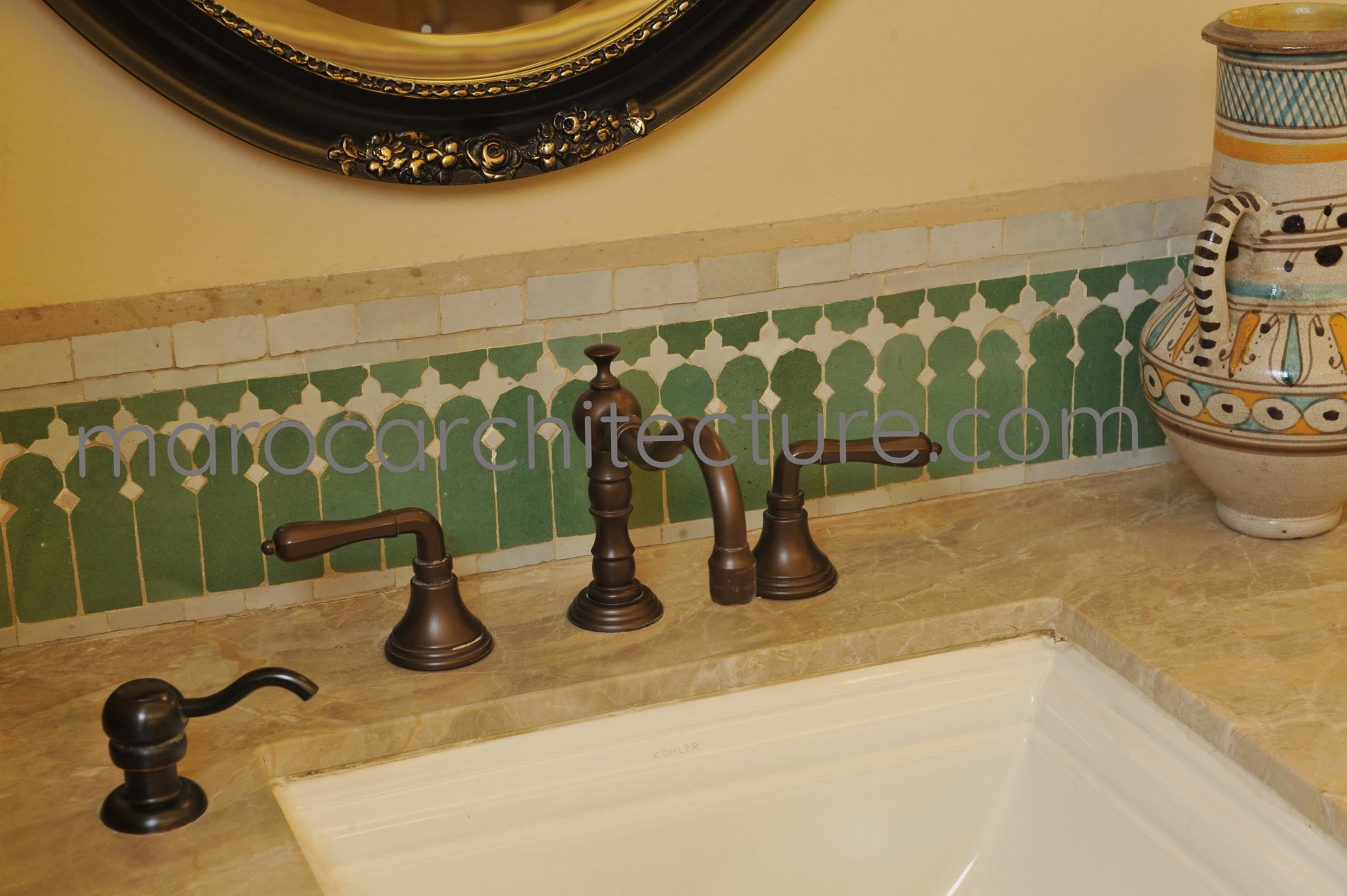 Description: Zennar Moroccan mosaic border. Hand cut assembled ceramic base mosaics